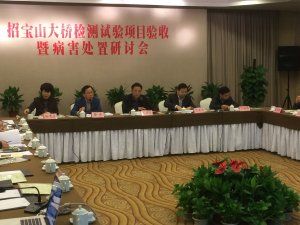 會上,與會人員及評審專家詳細聽取了市交通檢測中心技術人員做的檢測試驗報告及項目監(jiān)理單位中鐵武漢大橋工程咨詢監(jiān)理有限公司的檢測監(jiān)理意見,查看了相關資料。隨后,評審專家對招寶山大橋進行了現(xiàn)場踏勘后,經討論研究,評審專家對檢測試驗報告給予了充分肯定和高度評價,一致認為該項目檢測內容全面,數(shù)據詳實,分析評價客觀合理,結論可靠。同時,評審專家建議補充歷次病害情況的對比分析,細化橋梁病害描述,完善下一步養(yǎng)護、病害處治對策的建議。